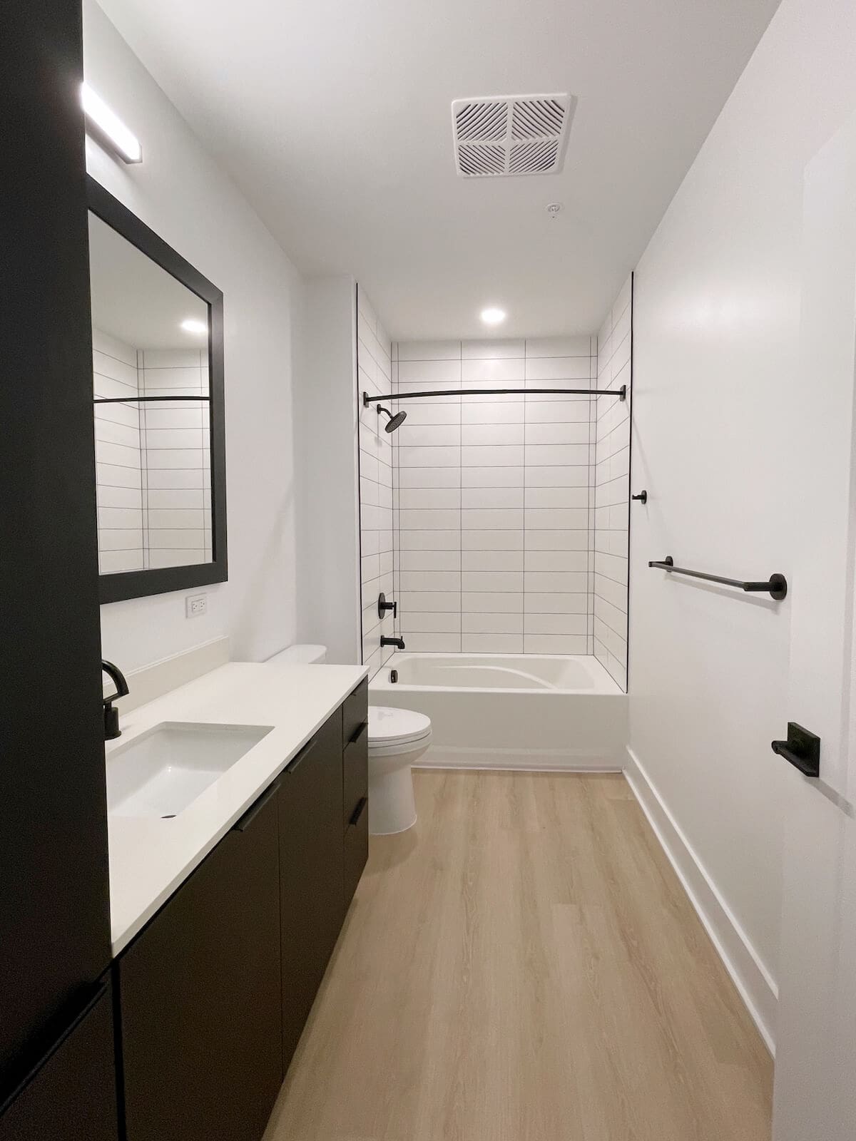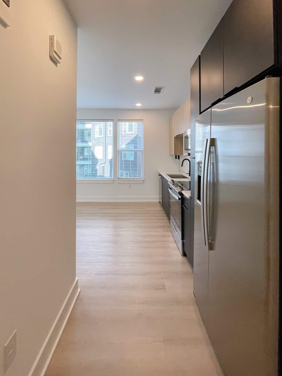 LoSo studio with separate sleep area – sliding barn door. Contemporary contrasting upper and lower cabinets, stainless appliances, and slab counters. Full resident amenities including incredible co-working spaces for those who work from home and need a change of scenery. Café on site, and within walking distance of several popular LoSo breweries and restaurants.