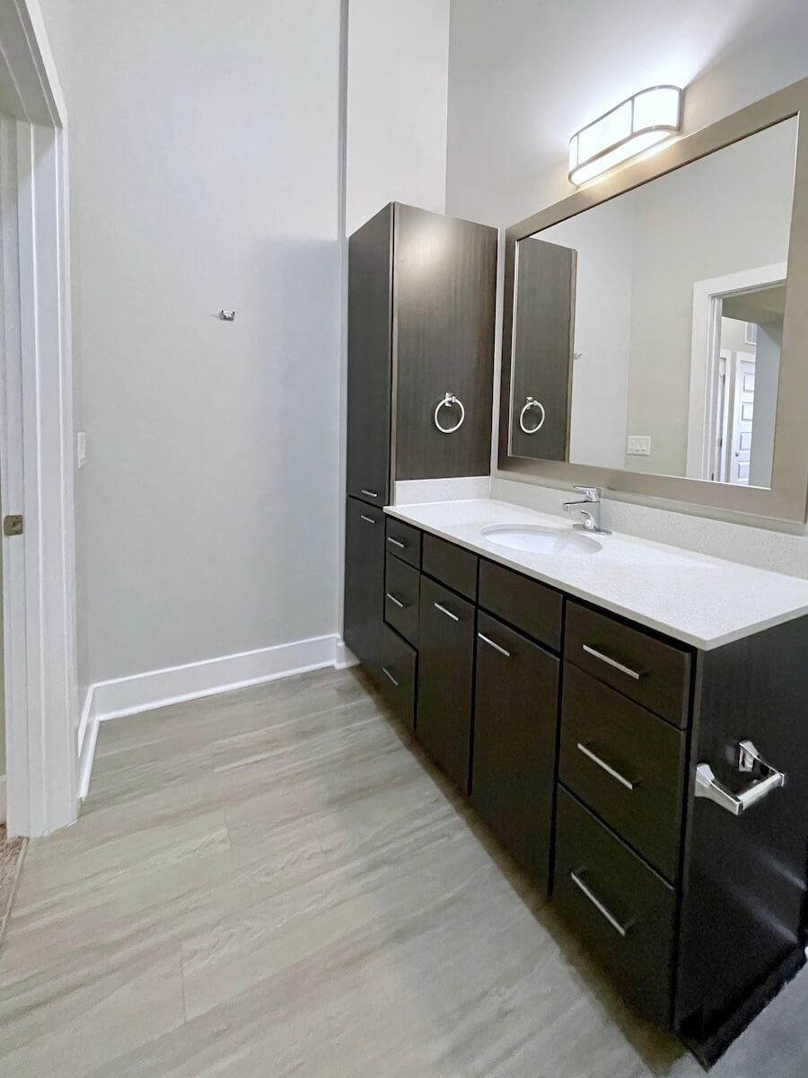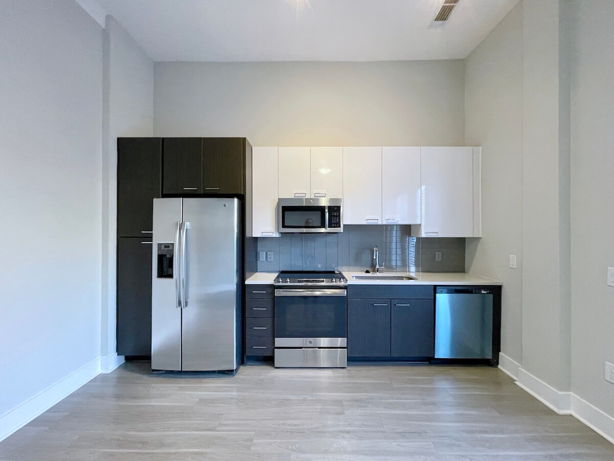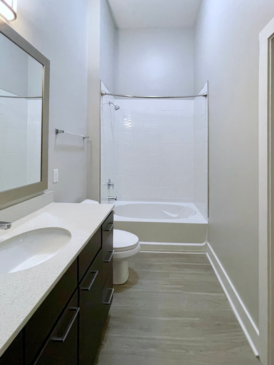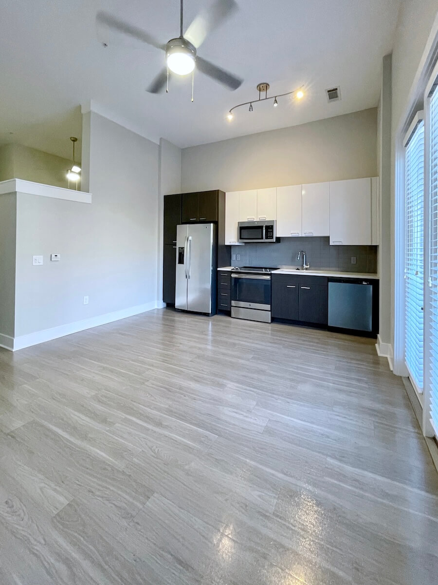 Contemporary 1 bedroom with patio in Uptown, now with 10 weeks free depending on move date and lease term. Contrasting cabinets in the kitchen, big windows. Loft style floorplan – bedroom has partial wall. Bath with soaking tub. Walk in closet. Great location on the edge of Uptown, within minutes of popular Camp North End, NoDa, and South End.